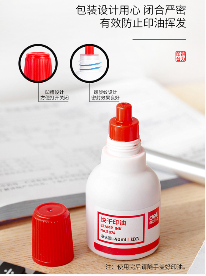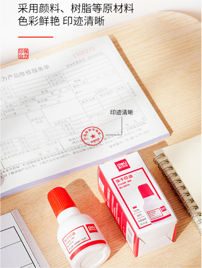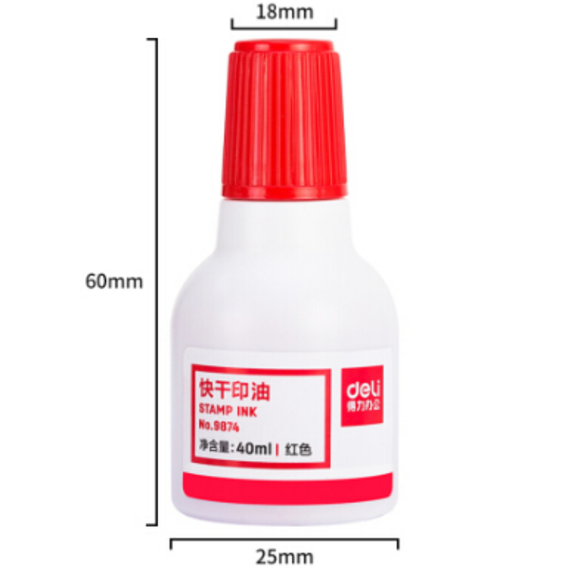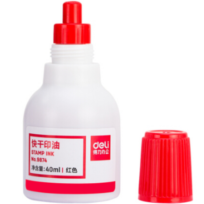 得力(deli)40ml財務(wù)印章快干清潔印油印泥 辦公用品 得力(deli)印油9874紅色