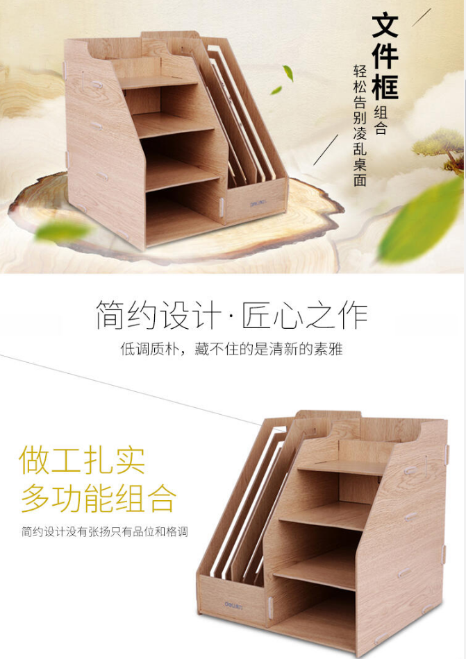 得力(deli)木質(zhì)纖維板創(chuàng)意文件架文件筐資料架文件欄辦公用品桌面收納整理 木質(zhì)纖維多功能 得力(deli)文件筐9842