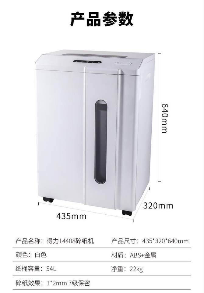 商品名稱:得力(deli)七級(jí)高保密碎紙機(jī)大容量 30分鐘連續(xù)碎紙機(jī) 得力(deli)碎紙機(jī)14408