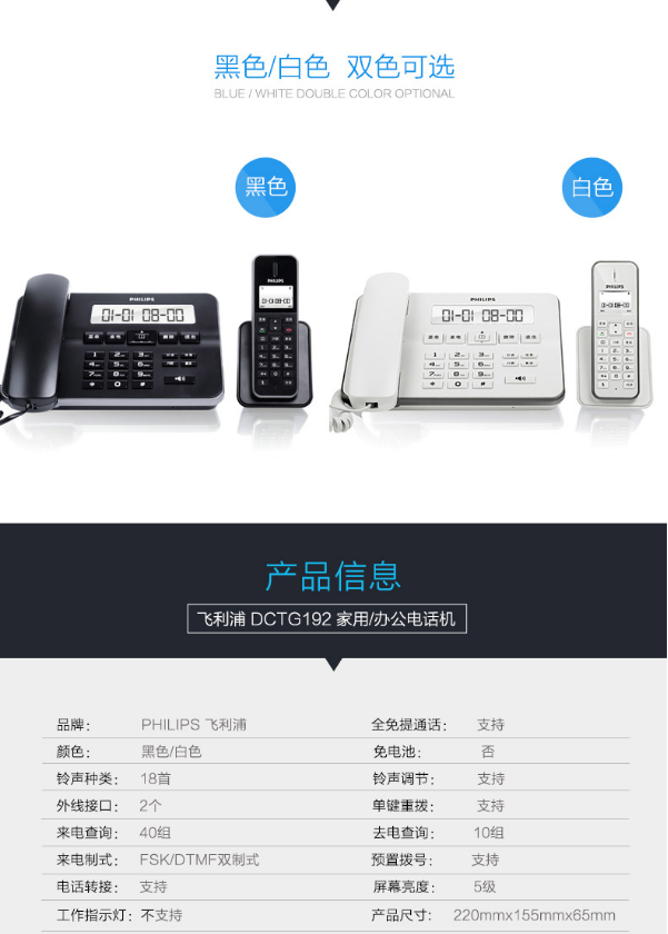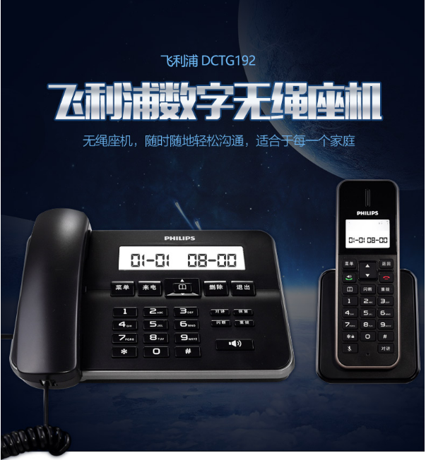 商品名稱:飛利浦(PHILIPS)無(wú)繩電話機(jī)無(wú)線座機(jī)子母機(jī) 辦公家用中文菜單雙免提擴(kuò)展子機(jī) 飛利浦DCTG192黑色