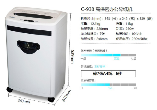 商品名稱(chēng):科密(comet)碎紙機(jī) 高保密辦公高速碎紙機(jī) 5級(jí)保密文件粉碎機(jī) 科密碎紙機(jī)C-938