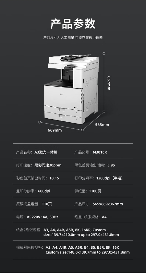 商品名稱:得力(deli) M301CR 復印機 A3彩色多功能打印機復印機掃描機一體機自動雙面彩色復印機