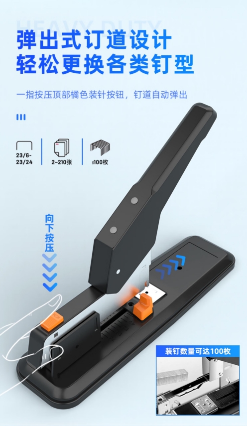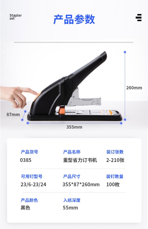 商品名稱:得力(deli)0358 裝訂及打孔類 省力重型訂書機(jī) 加厚大型訂書器 訂210張紙