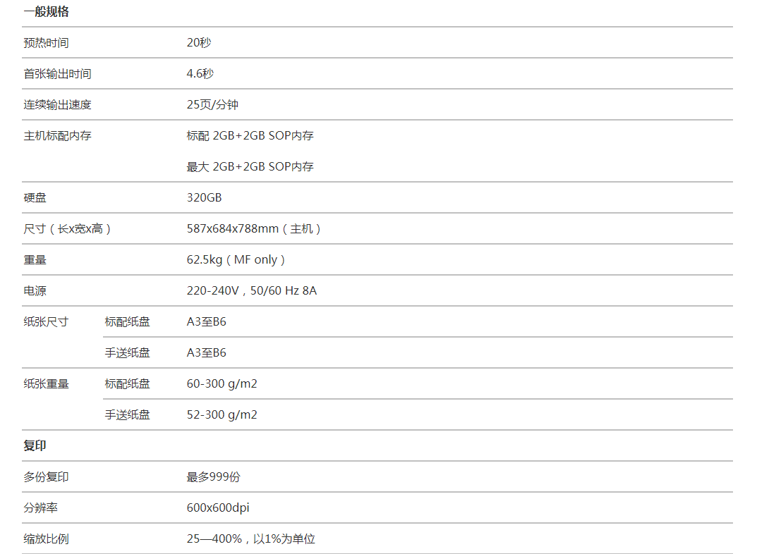 打印速度劃分:中速機(25頁~50頁/分鐘)