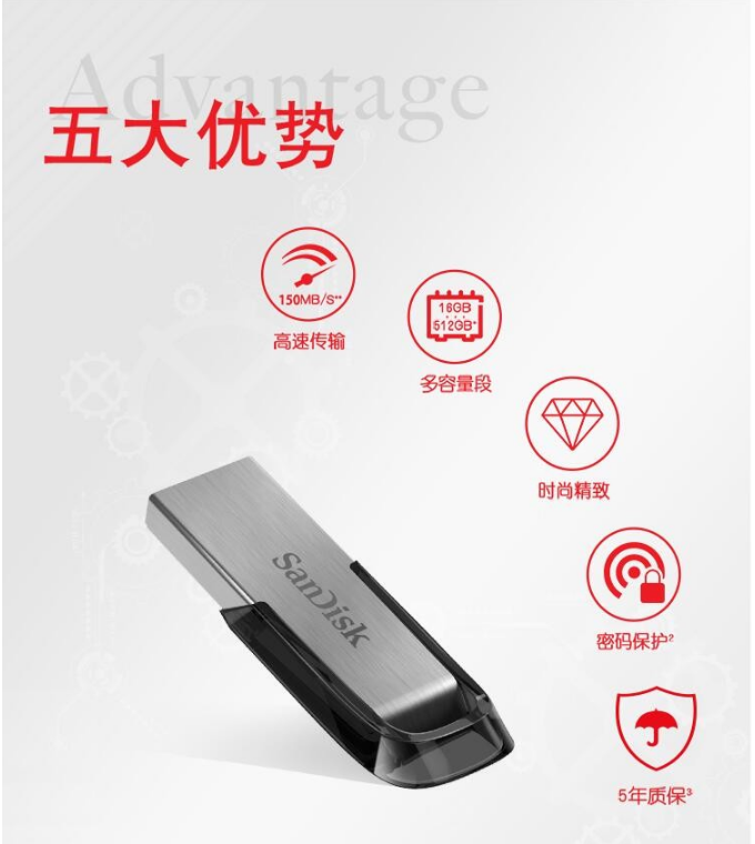 商品名稱:閃迪(SanDisk)U盤 CZ73酷鑠 USB3.0讀速150MB/s 閃迪金屬外殼256GBCZ73酷鑠
