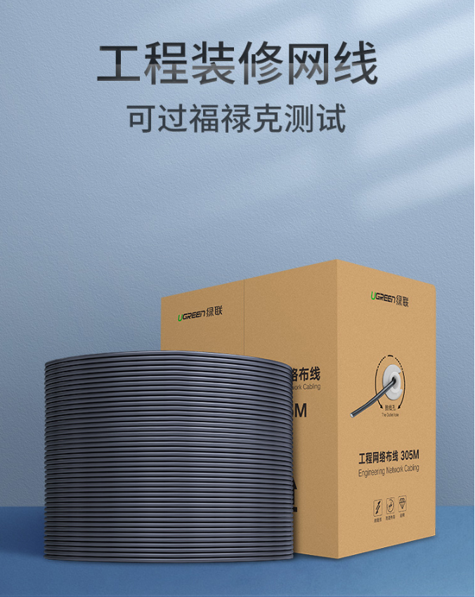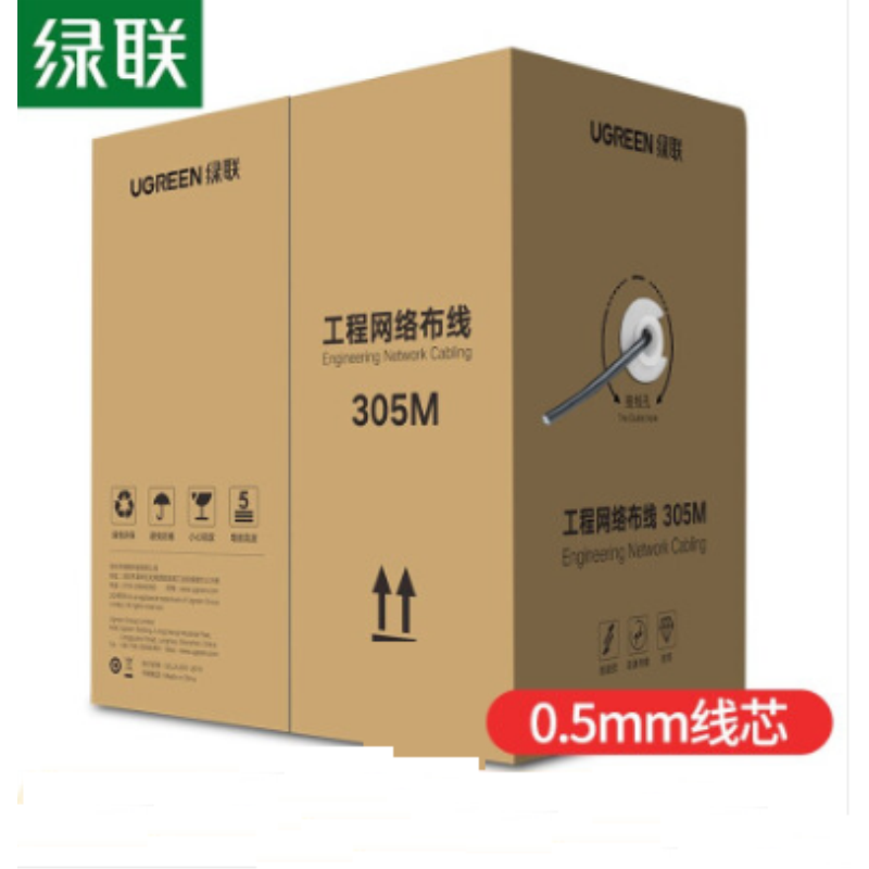 商品名稱:綠聯(lián)(UGREEN)超五類網(wǎng)線【工程版0.5mm純銅線芯】CAT5e超5類8芯雙絞箱線 家裝寬帶非屏蔽監(jiān)控305米 60547