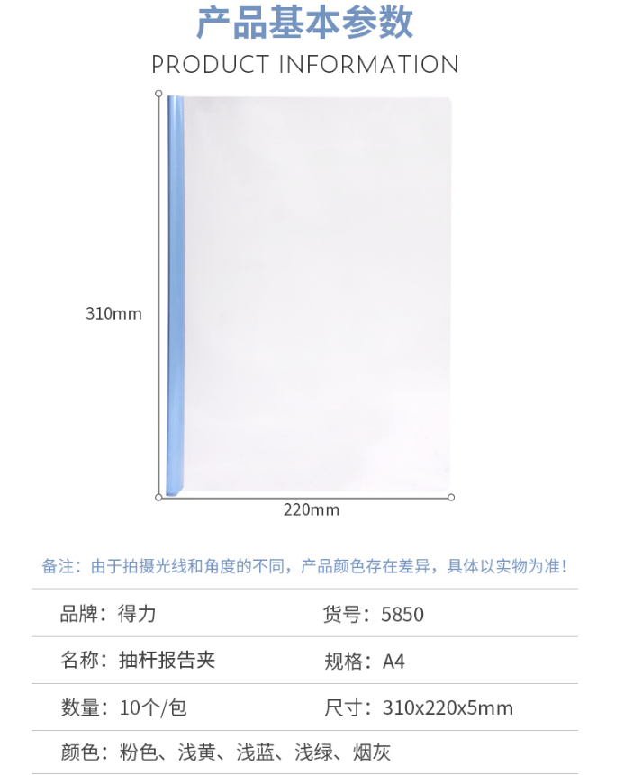 得力(deli)10只A4水滴形拉桿夾抽桿文件夾5mm彩色透明資料夾簡歷夾 得力拉桿夾5850