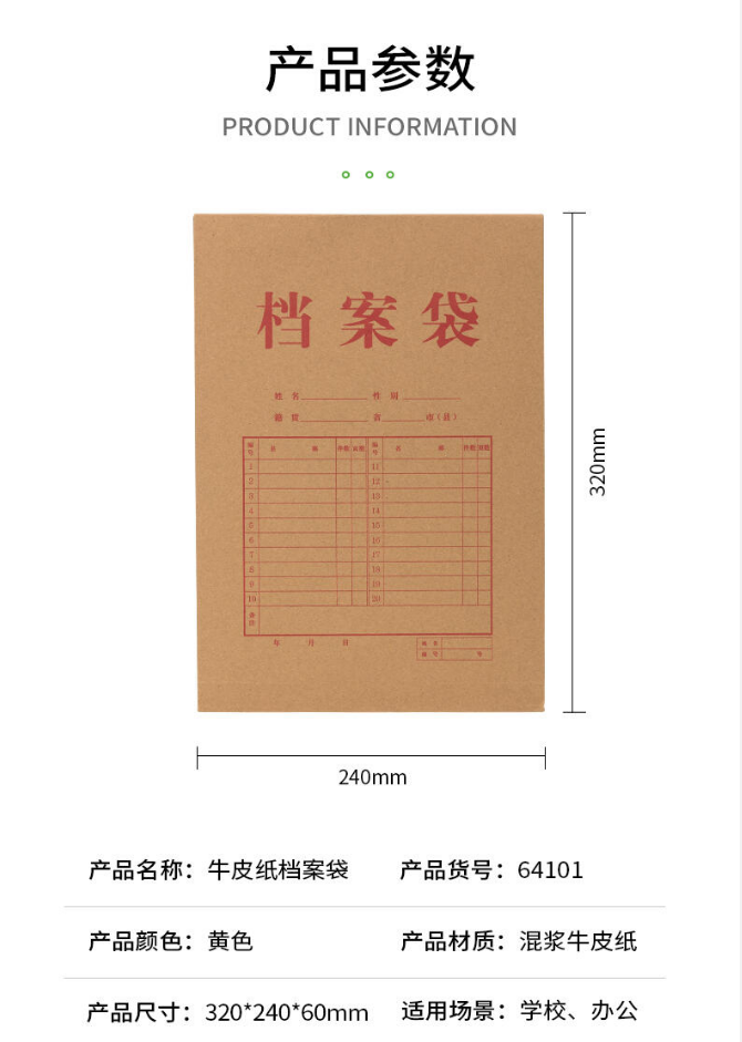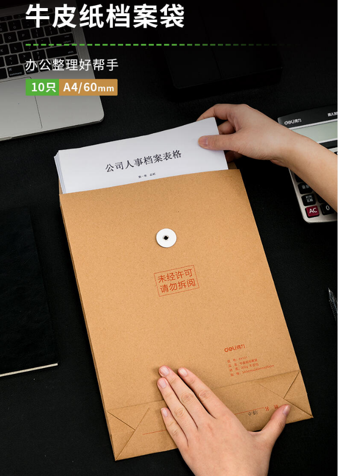 商品名稱:得力(deli)10只A4混漿牛皮紙檔案袋200g側(cè)寬6cm辦公文件資料袋票據(jù)收納袋 得力(deli)檔案袋64101