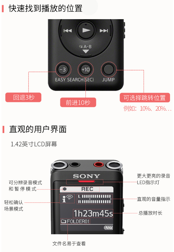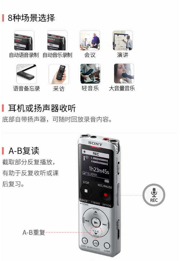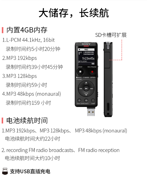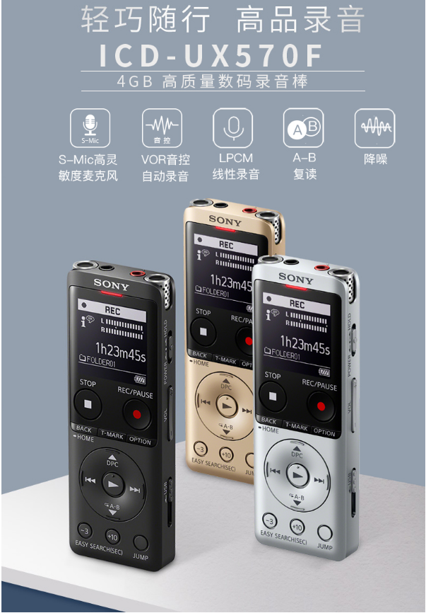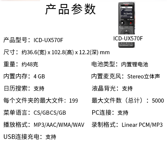 商品名稱:索尼(SONY)錄音筆 智能降噪升級款專業(yè)線性錄音棒商務學習辦公4GB索尼ICD-UX570F