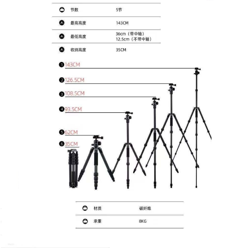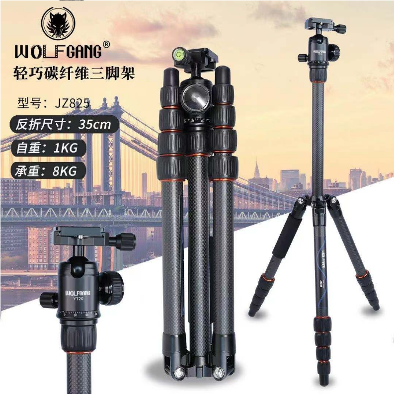 商品名稱:沃爾夫?qū)╓OLFGANG)JZ-825+YT20炭纖維三腳架佳能索尼松下尼康單反微單攝像機球形云臺三腳架 炭纖維三腳架沃爾夫?qū)鵍Z-825