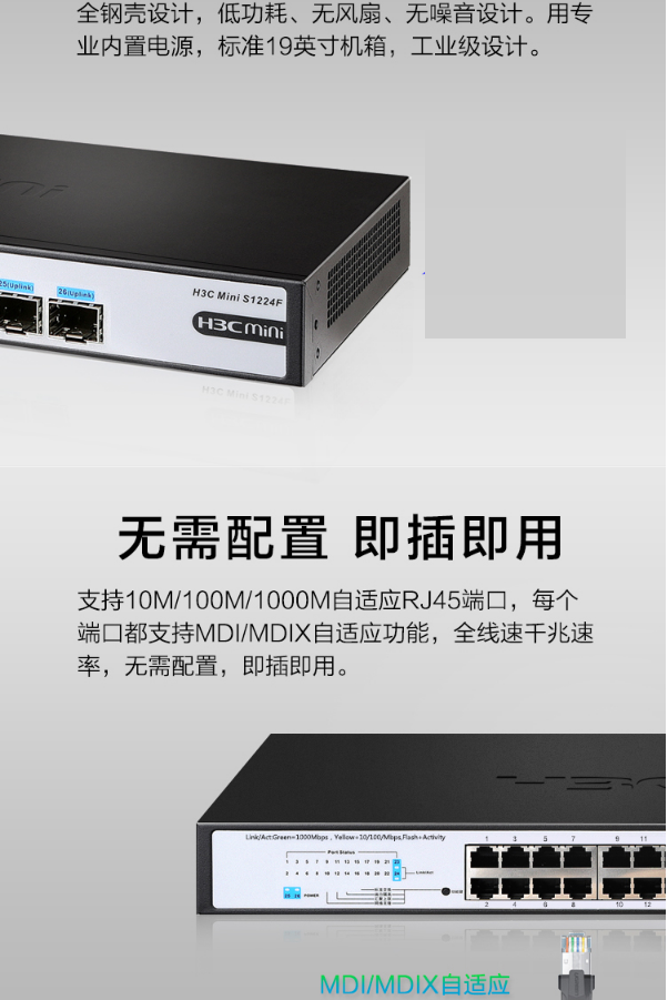 華三(H3C)Mini S1224F 24千兆電口+2千兆光口非網(wǎng)管機(jī)架式企業(yè)級網(wǎng)絡(luò)交換機(jī) 網(wǎng)線分線器 分流器華三千兆交換機(jī)MiniS1224F