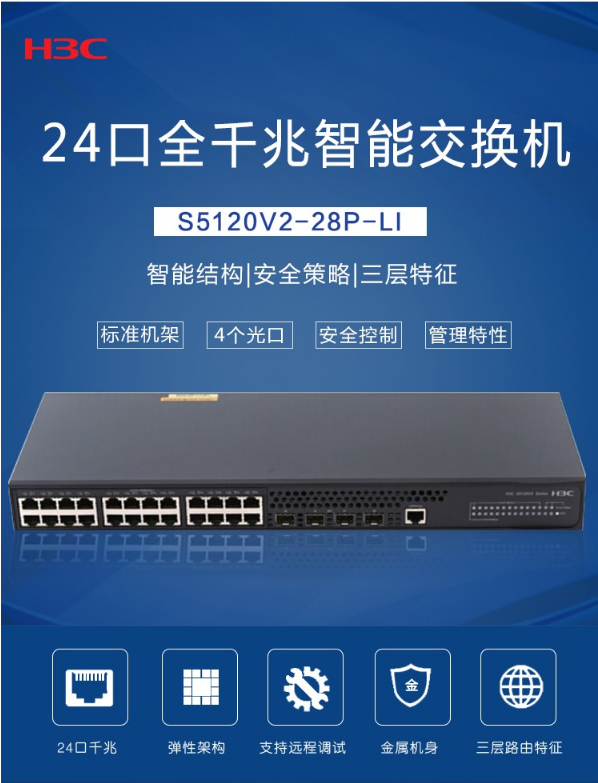華三(H3C) 企業(yè)級(jí)24口全千兆智能網(wǎng)管型交換機(jī)華三S5120V2-28P-LI