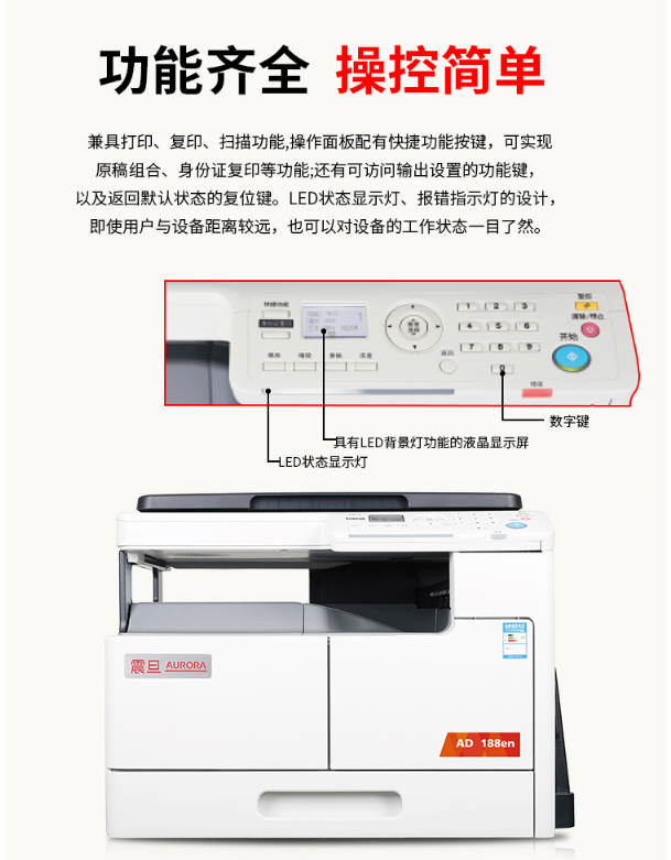 震旦(AURORA)A3復(fù)印機(jī)打印機(jī)一體機(jī)辦公A4黑白激光多功能復(fù)合機(jī)(打印 復(fù)印 掃描)震旦打印機(jī)AD188EN