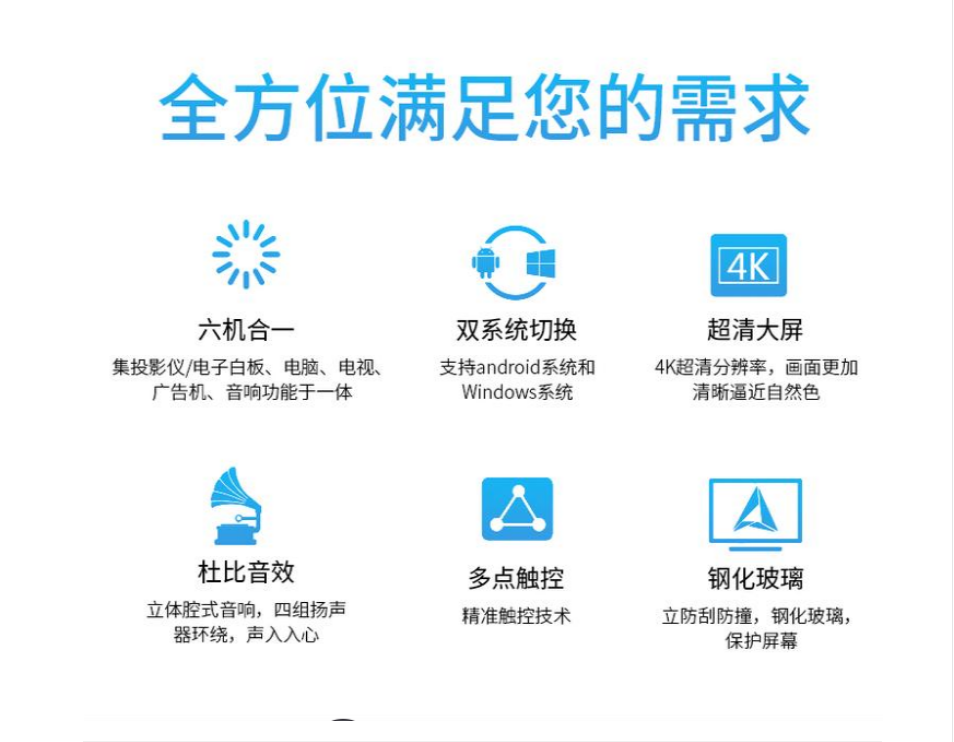 商品名稱:美晶 MG-CM860 觸控一體機(jī) 86寸EA雙系統(tǒng)教學(xué)會(huì)議一體機(jī) 分辨率4K 定額功率200W 納米智慧黑板