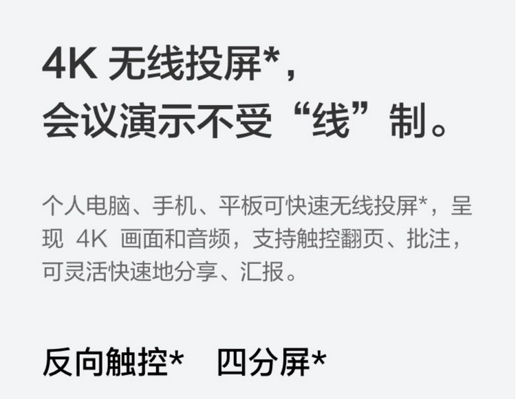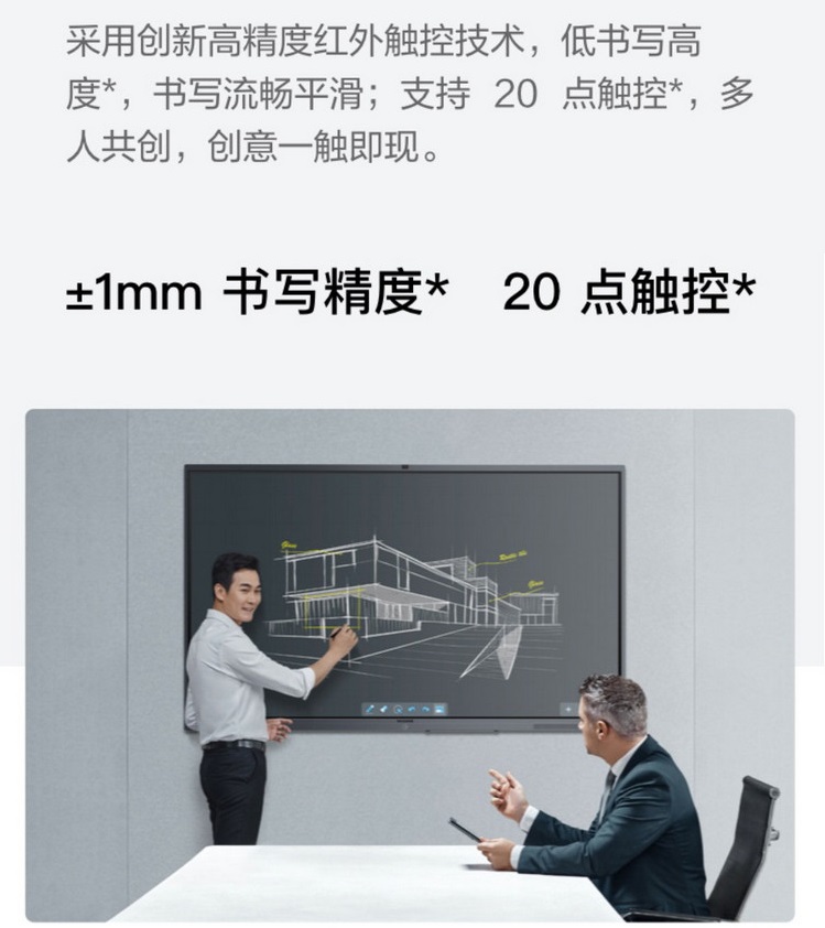 包裝清單: 會(huì)議平板*1臺(tái)、PC模塊*1、傳屏器*1、智能筆*1、移動(dòng)支架*1、雙色筆*2支、AC電源線*1個(gè)、壁掛套件*1個(gè)、保修卡、安裝指南*1份